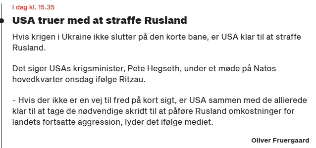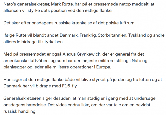 Hvem kan tyde, hvad det er Pete H siger? Jeg selv læser det lidt som om at Nato muligt ville gå ind i krigen på Ukraines side.