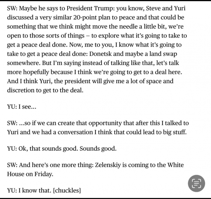 Witkoffs samtale med en russisk forhandler. Det lugter af forræderi.