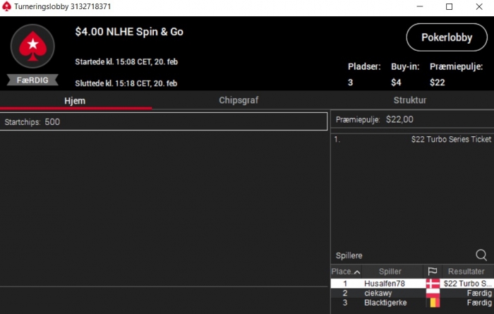 vandt sat til 22 d main evnet ... micro millions - så 19.30 går det løs .... bliver sgu nok en kort omgang når strukturen er at folk kan købe sig ind 4 gange og jeg poster at jeg spiller herinde .;-).............. men den for da et skud - gl til alle i aften ...