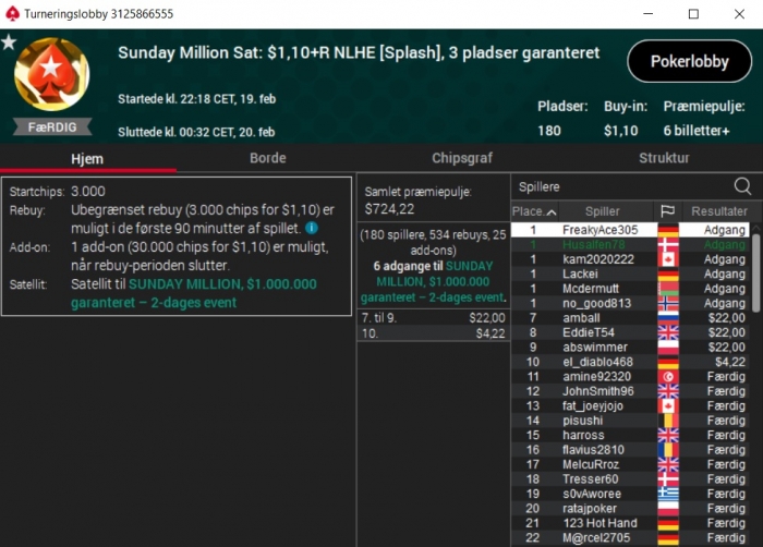 Spiller også MicroMillions, men det går ikke i dag. Har 2 turneringer tilbage, 3.3 PKO og 5.5 der lige startede.